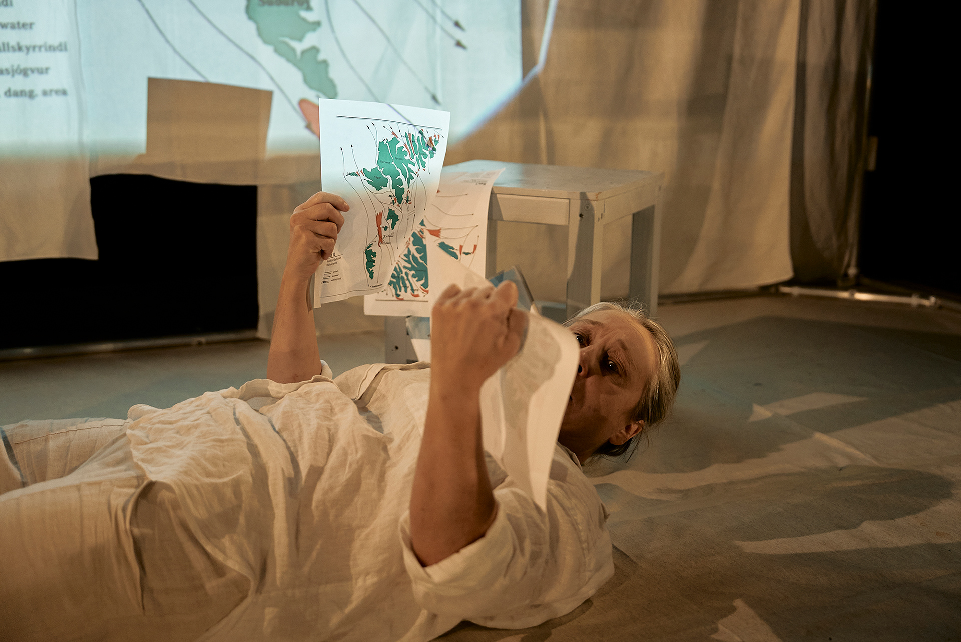 UPPHAV is a monologue based on tellings, interviews, articles around two boat accidents on the island Hestur on the 1st. of April 1919. Eleven men drown. Left behind are wives, mothers, fathers, siblings, grandparents and children in the village of Hestur; a community that, at this time, has around 100 inhabitants. Actor Gunnvá Zachariasen’s grandmother, Óluva, was 6 years old, when the tragedy hits. Óluva and her sister loose their father and an uncle.